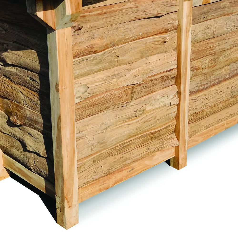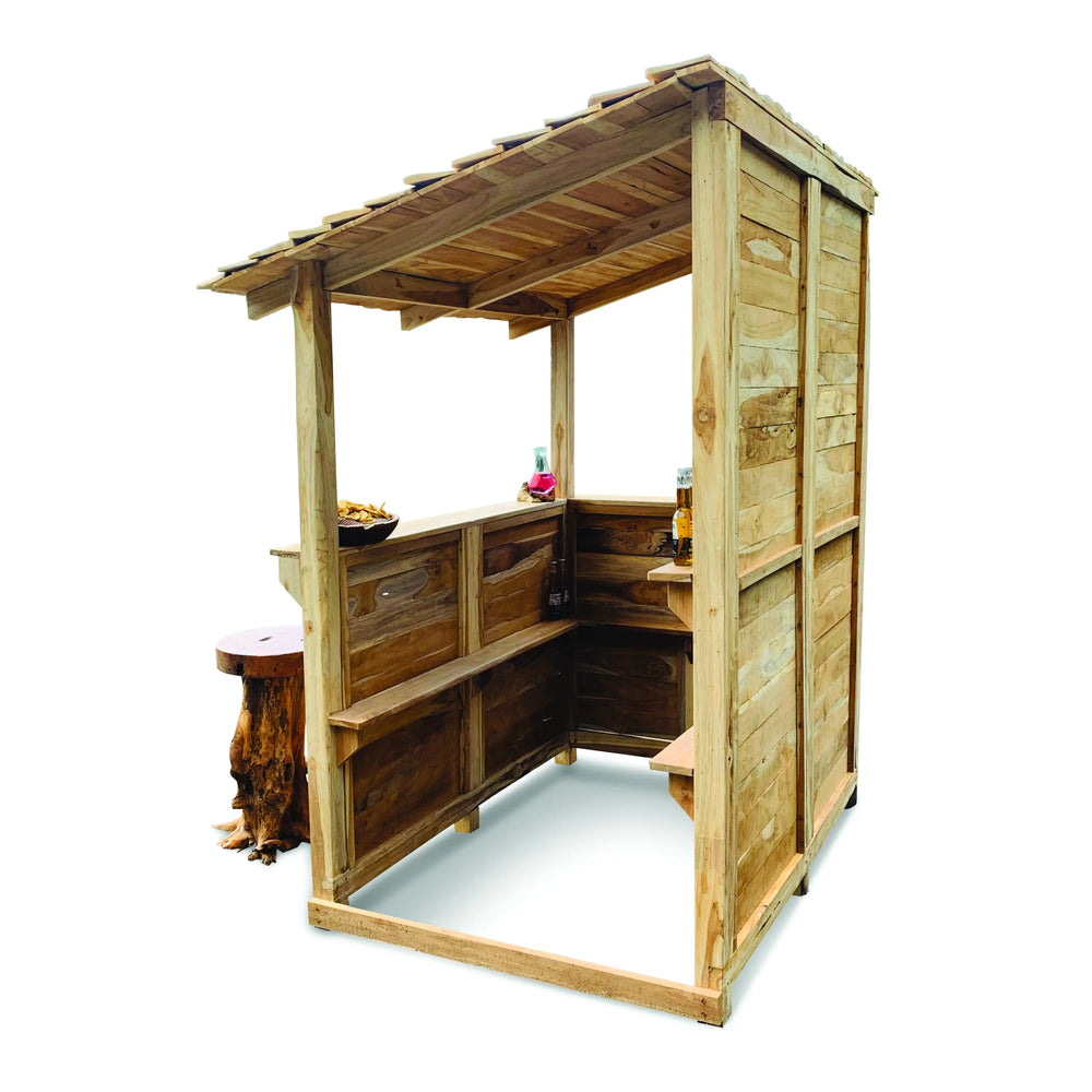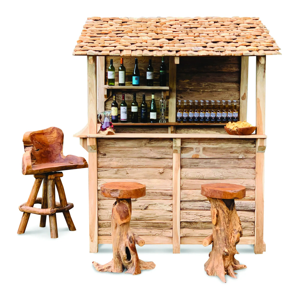 Serve cocktails in the summer and mulled wine in the winter from the Garden Bar. Plenty of storage room for bottles, glasses and accessories. Hand carved teak root timber and tiles.