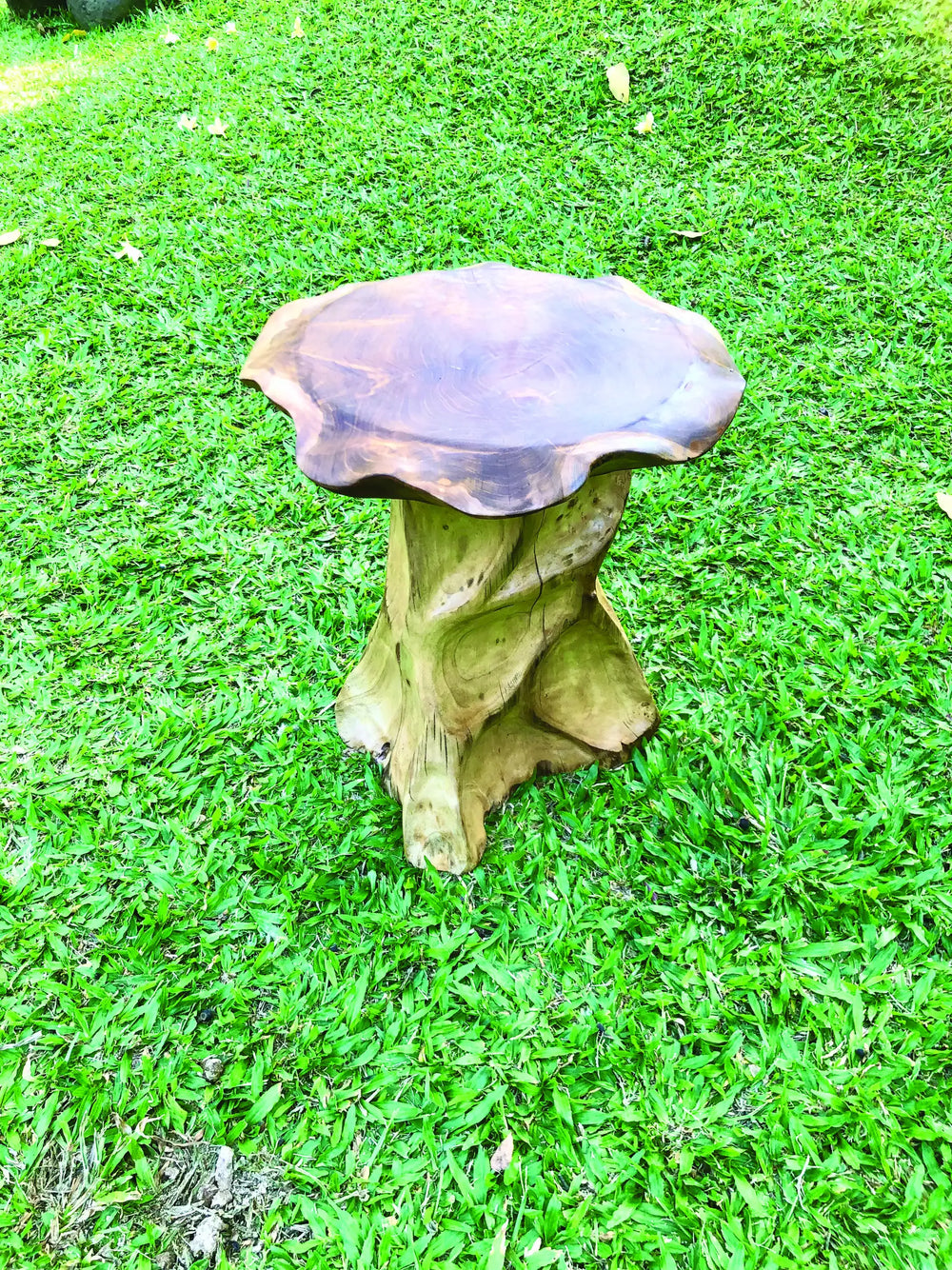 Our Lombok Mushroom Lamp Table has a hand-carved slab top and root pedestal, and its perfect for holding a lamp to brighten up dark corners or holding drinks and snacks in the garden.