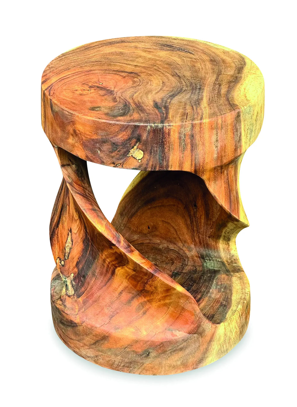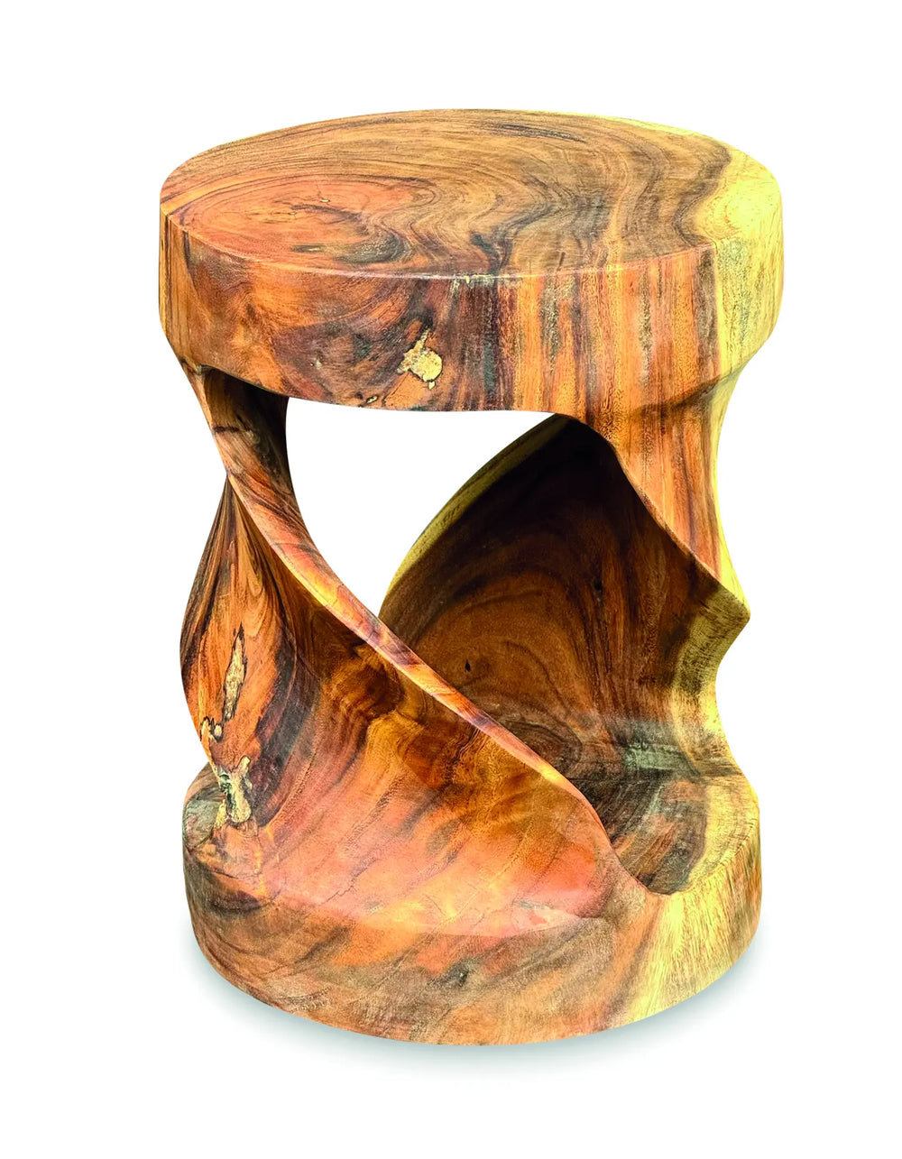 Our range of twist furniture is unique and versatile. This indoor, round-topped twist table has a multitude of uses hand carved from suar wood and standing 45cm high.