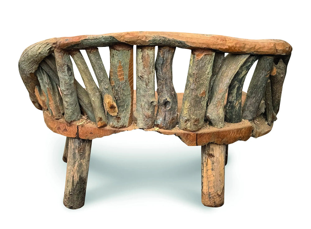This hand-sculpted teak driftwood garden bench combines classic rustic styling with natural teak grain for a relaxed, organic look. Each bench is individually crafted, so no two have the same pattern or texture, making it a unique feature for any space.