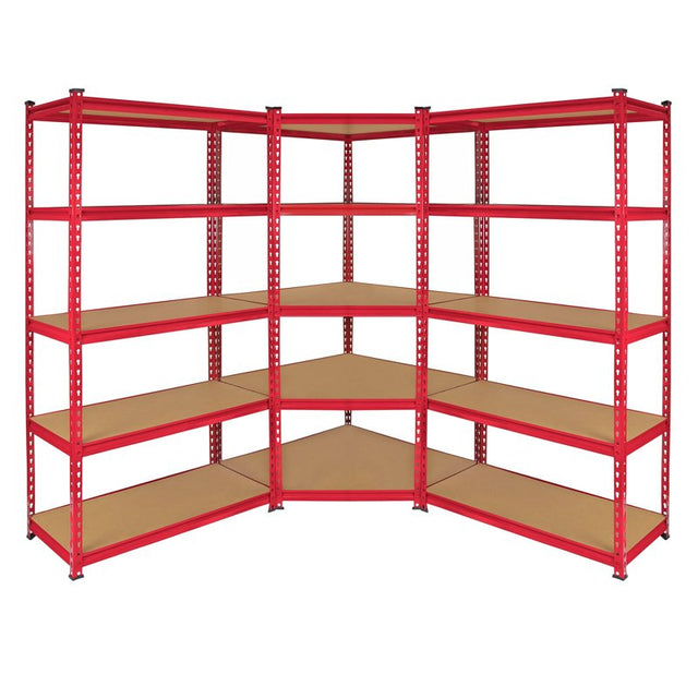 Built from powder-coated steel in a sleek glossy red finish, each shelving unit is as tough as it is stylish. The bolt-less, keyhole design ensures quick and fuss-free assembly all you'll need is the included rubber mallet. Each bay features five solid MDF shelves with adjustable heights, allowing you to configure your storage exactly the way you want it. The corner unit holds up to 265kg per shelf, while each standard Z-Rax bay can bear a mighty 360kg per shelf (with evenly distributed weight), making this bundle perfect for tools, boxes, parts, stock, or bulky household items.