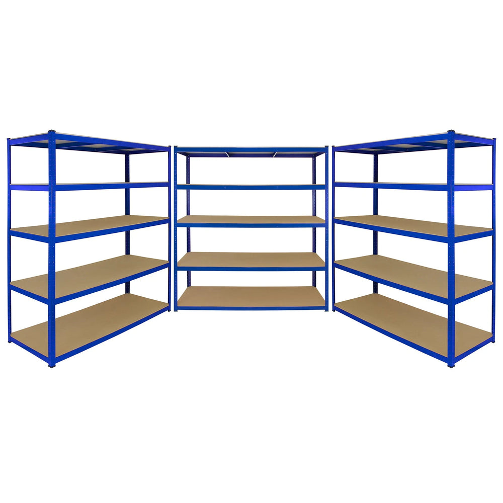 Monster Racking T-Rax 3 x Extra Wide Storage Shelves, Blue, 160cm W, 60cm D