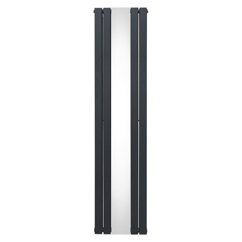 Infuse warmth into your home with our cutting-edge flat panel vertical radiator in anthracite grey with a sleek central mirror - a perfect blend of timeless elegance and modern efficiency.