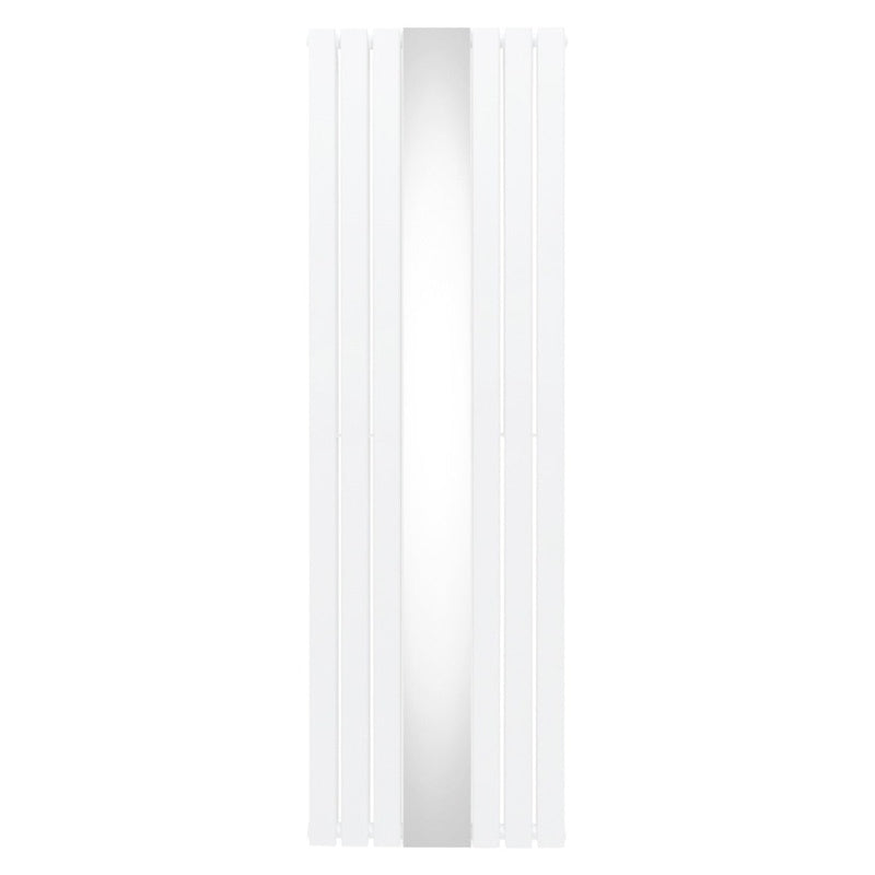 Infuse warmth into your home with our cutting-edge flat panel vertical radiator in white with a sleek central mirror - a perfect blend of timeless elegance and modern efficiency.