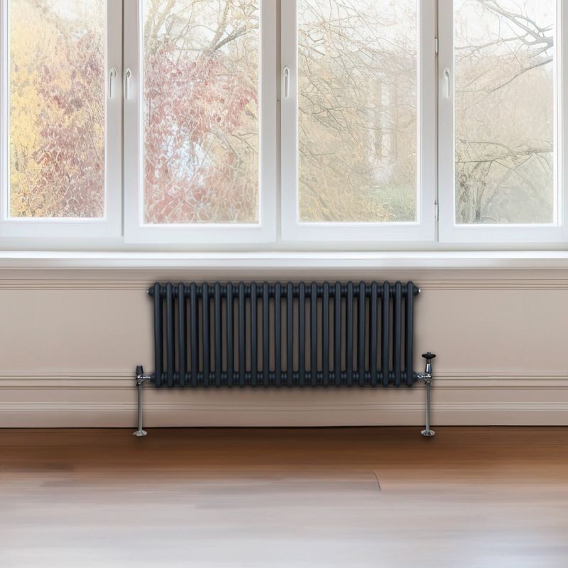 Infuse warmth into your home with our cutting-edge traditional style 2 column horizontal radiator in anthracite grey - a perfect blend of timeless elegance and modern efficiency.
