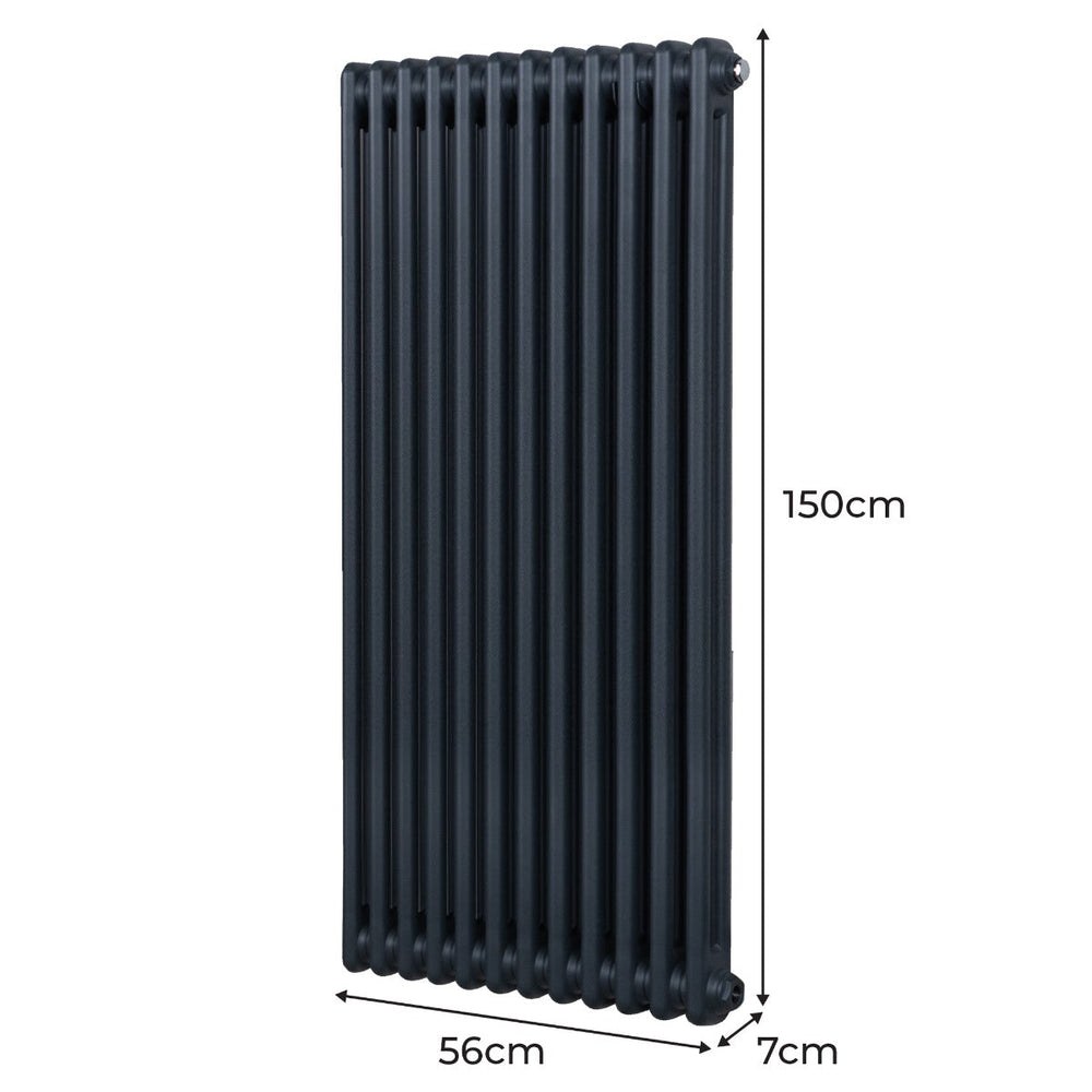 Traditional 2 Column Radiator - 1500 x 562mm - Anthracite Grey