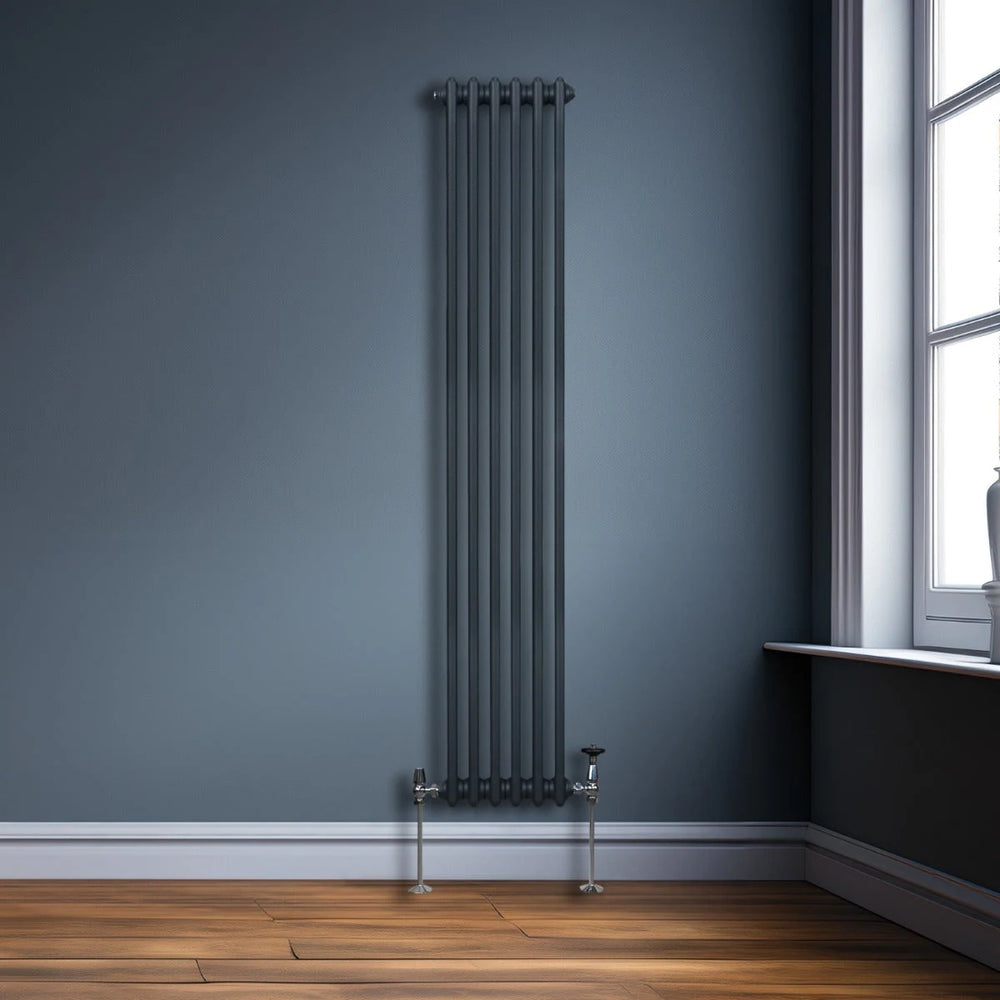 Infuse warmth into your home with our cutting-edge traditional style 2 column vertical radiator in anthracite grey - a perfect blend of timeless elegance and modern efficiency.
