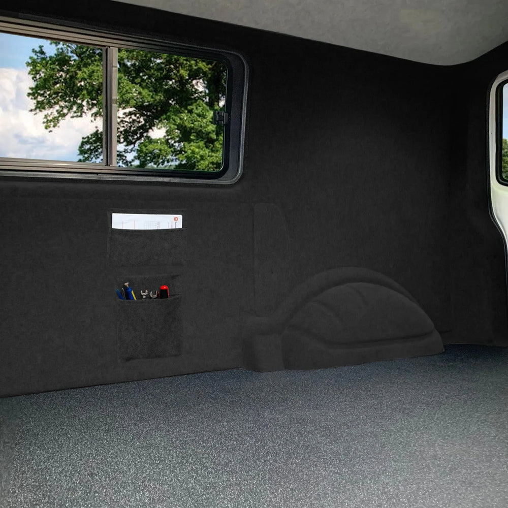 Transform your vehicle's interior into a harmonious blend of style and functionality with our anthracite grey van lining and storage pouch set.