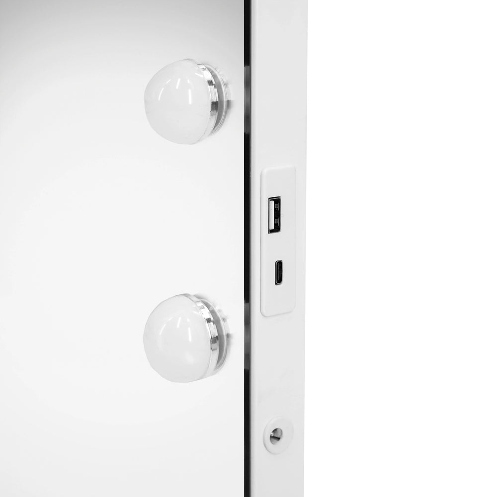 Stay connected and charged with convenience. The mirror features two USB ports - USB-A and USB-C - allowing you to charge multiple devices simultaneously. Whether it's your smartphone, tablet, or other accessories, you can keep them powered up for seamless use throughout your beauty routine.