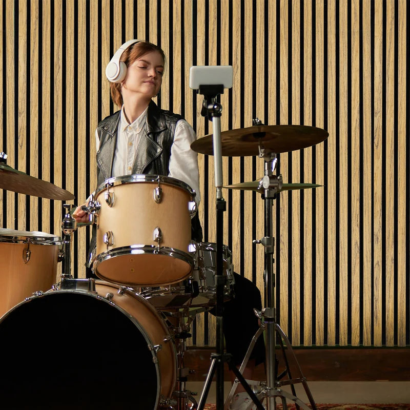 Crafted with precision, the slats are made of durable MDF topped with a high-quality veneer that replicates the warm, timeless appeal of natural oak wood. Each slat is paired with a 9mm thick felt backing that is not only highly effective at reducing noise but also flame retardant for added safety. The individual slats are 27mm wide and 12mm deep, with 13mm spacing, giving a modern, uniform look that complements any dcor. The carefully chosen materials ensure both visual appeal and long-lasting performance.