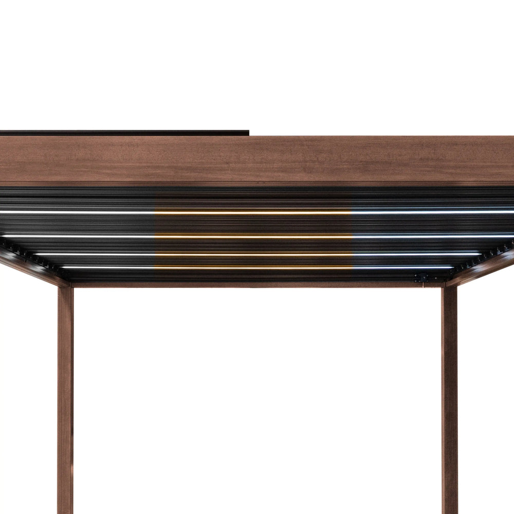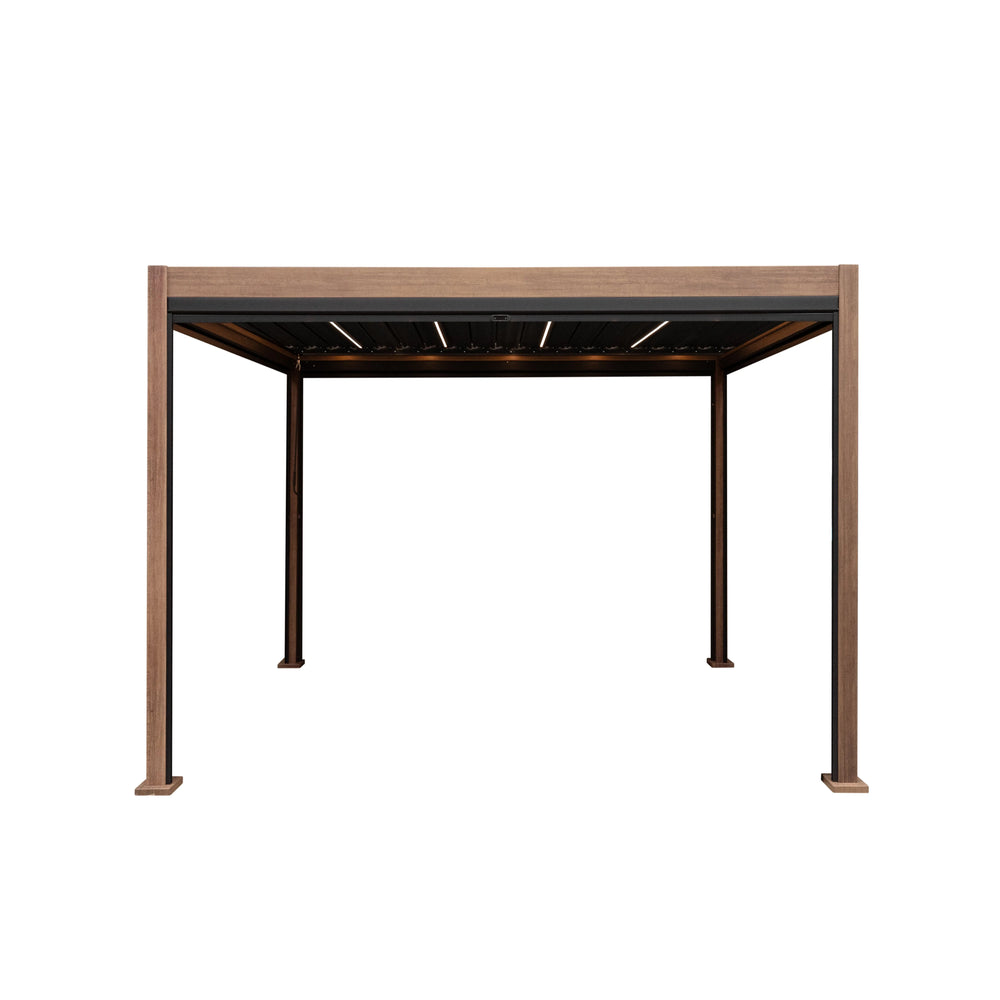 Wood Effect Aluminium Pergola With Blinds & LED Lights - 3m x 3m