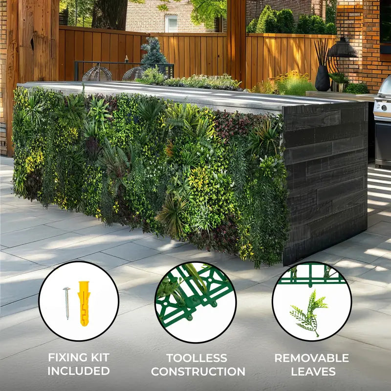 Measuring 100cm x 100cm, these tiles offer expansive coverage, allowing you to effortlessly create the look of a realistic plant wall. Designed for both impact and practicality, their structured yet flexible form ensures a seamless fit, whether you're enhancing a small feature area or covering an entire surface with vibrant greenery.