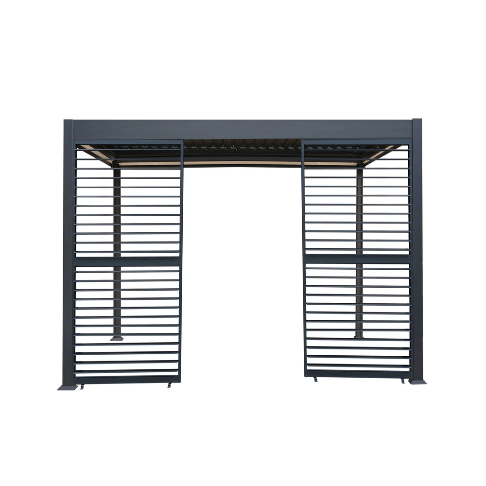Anthracite Aluminium Pergola With White Blinds & 2 Shutter Panels - 3m x 3m
