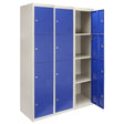 3 x Metal Storage Lockers - Four Doors, Blue - Flatpack