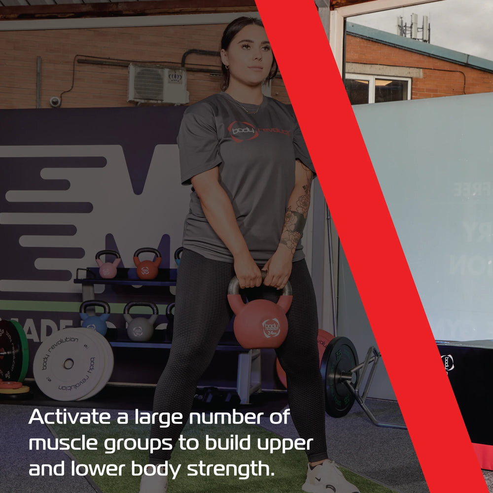 With its colour-coded neoprene exterior, identifying your desired weight is quick and intuitive especially useful during high-intensity circuits or varied training sessions. Whether you're working on your strength, cardio endurance, or core stability, the Body Revolution kettlebell offers an effective and efficient way to build total-body fitness. Its the perfect addition to any training toolkit for those seeking convenience, durability, and performance in one compact design.