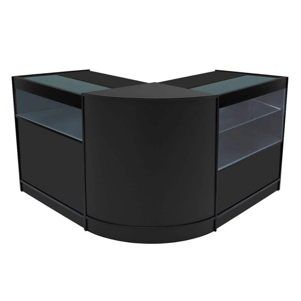 Bringing a modern, professional edge to any retail space, this collection of black LED shop counters offers a stylish and practical solution for showcasing merchandise.