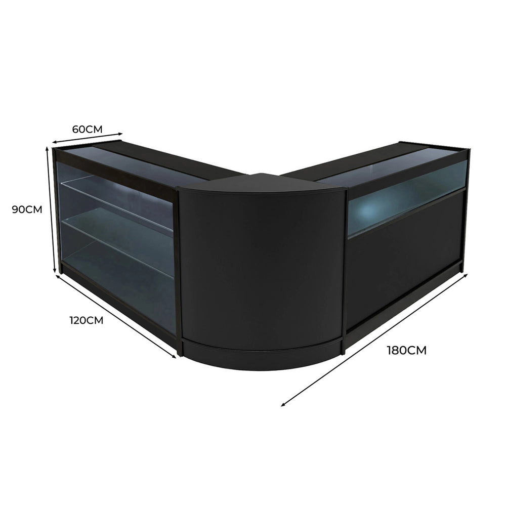 Bringing a modern, professional edge to any retail space, this collection of black LED shop counters offers a stylish and practical solution for showcasing merchandise.