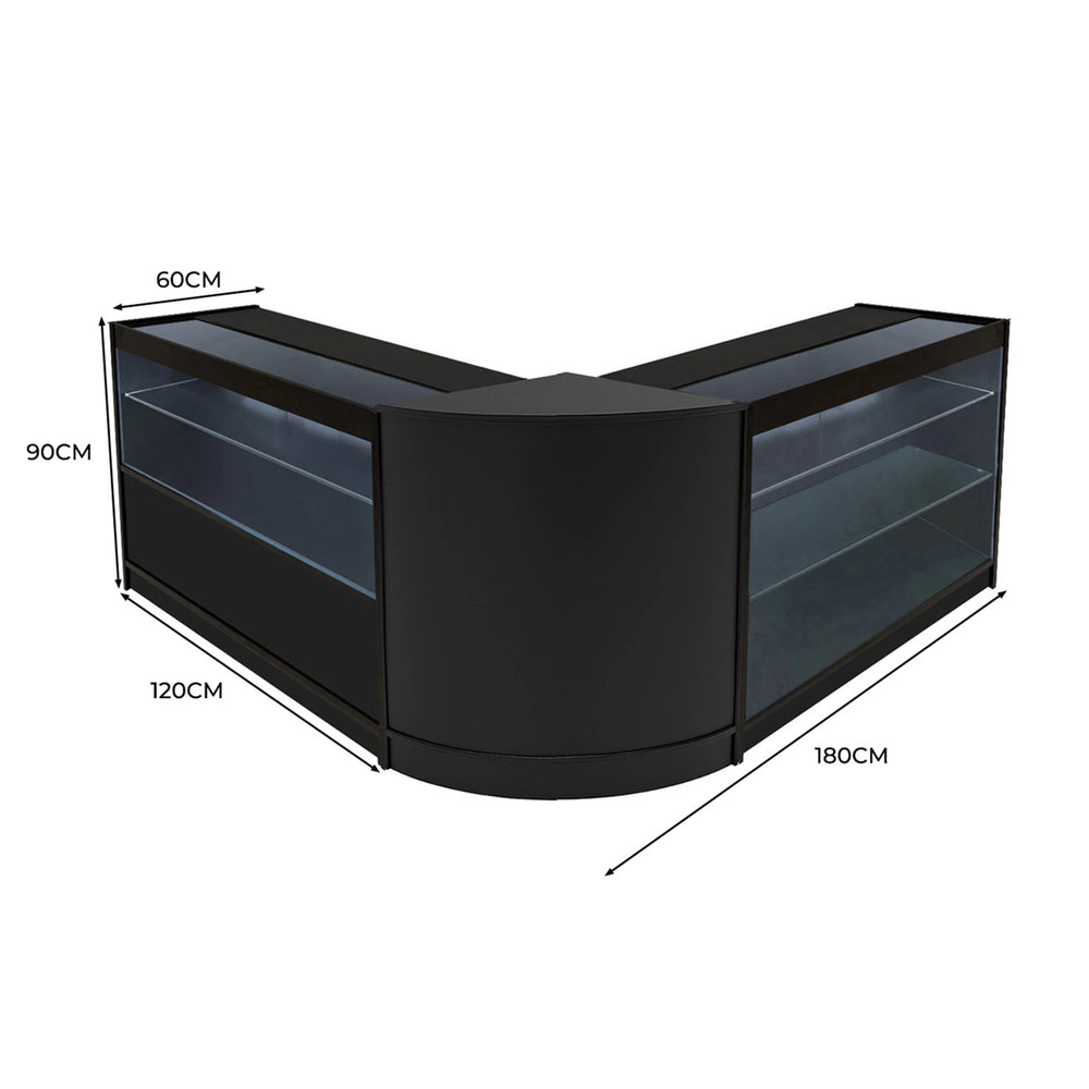 Bringing a modern, professional edge to any retail space, this collection of black LED shop counters offers a stylish and practical solution for showcasing merchandise.
