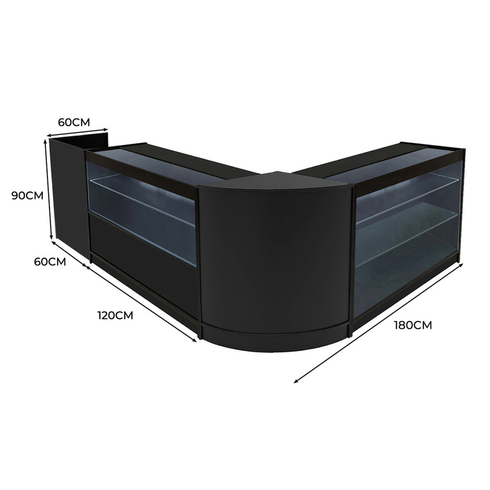 Bringing a modern, professional edge to any retail space, this collection of black LED shop counters offers a stylish and practical solution for showcasing merchandise.