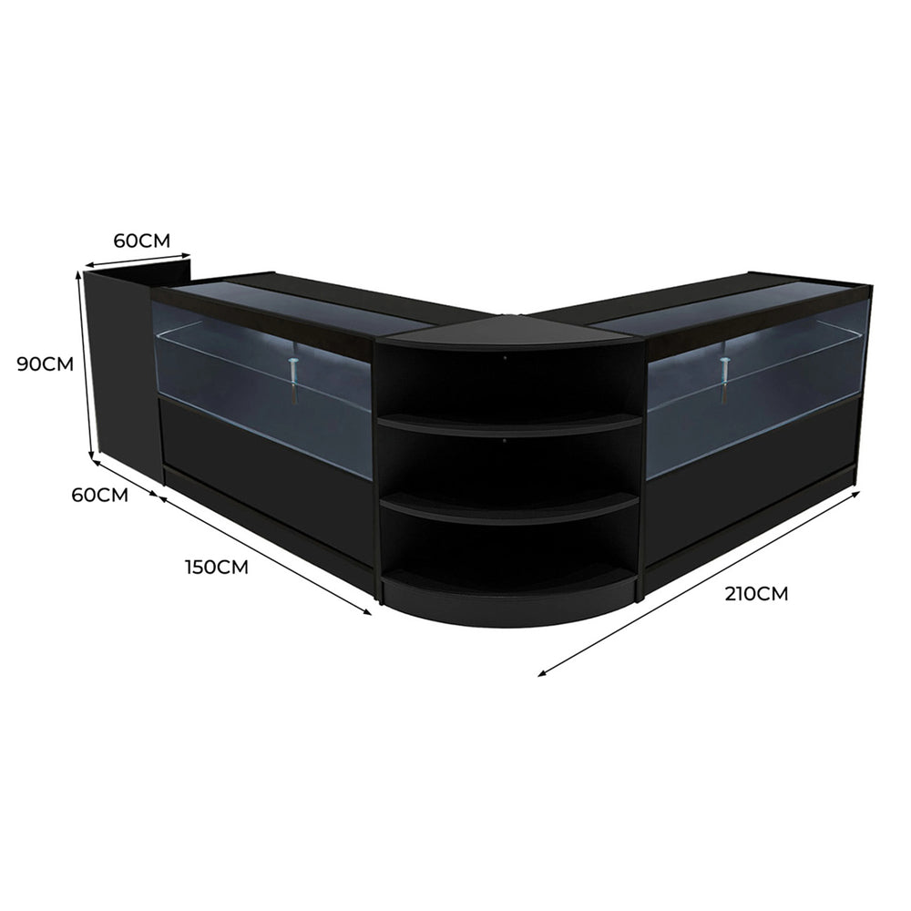 Create a refined, professional retail display with this premium counter bundle, featuring two C1500 LED display counters, one LM60 curved corner counter and a TB60 till counter the perfect combination of style, functionality, and layout flexibility for any modern retail environment.