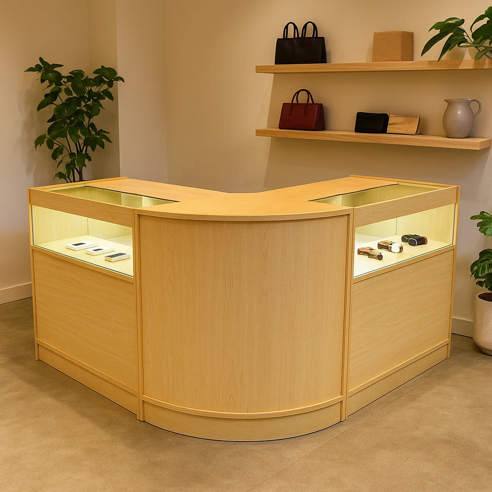Create a refined, professional retail display with this premium counter bundle, featuring two B900 LED display counters and one CM60 curved corner counter the perfect combination of style, functionality, and layout flexibility for any modern retail environment.