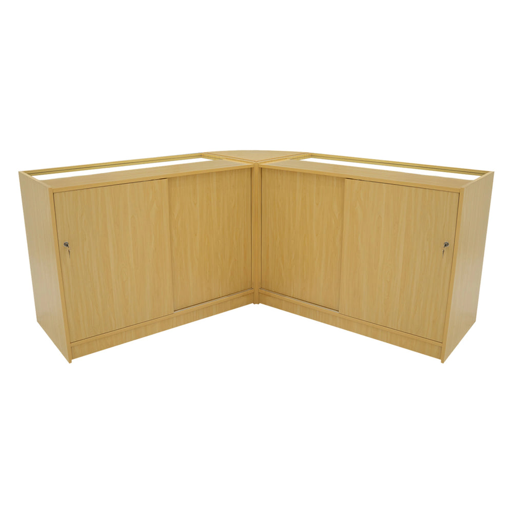 All counters in this range are constructed from high-quality MDF and finished in a durable maple melamine coating, combining resilience with a clean, modern aesthetic. The K1200 and B1200 also feature toughened glass display panels, offering a premium presentation surface that complements the overall professional finish. The entire collection is built to withstand the demands of high-traffic retail environments.