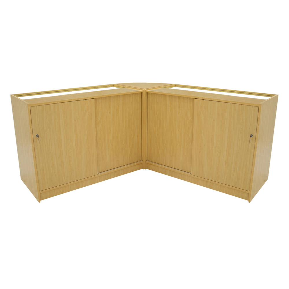 All counters in this range are constructed from high-quality MDF and finished in a durable maple melamine coating, combining resilience with a clean, modern aesthetic. The K1200 and C1200 also feature toughened glass display panels, offering a premium presentation surface that complements the overall professional finish. The entire collection is built to withstand the demands of high-traffic retail environments.