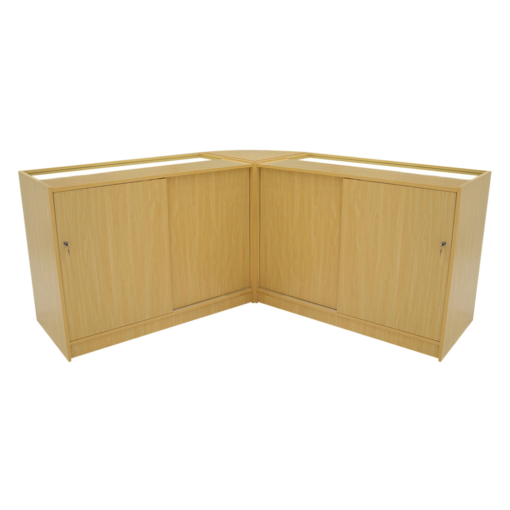 All counters in this range are constructed from high-quality MDF and finished in a durable maple melamine coating, combining resilience with a clean, modern aesthetic. The K1200 and C1200 also feature toughened glass display panels, offering a premium presentation surface that complements the overall professional finish. The entire collection is built to withstand the demands of high-traffic retail environments.