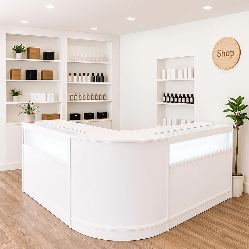 Create a refined, professional retail display with this premium counter bundle, featuring two B900 LED display counters and one CM60 curved corner counter the perfect combination of style, functionality, and layout flexibility for any modern retail environment.