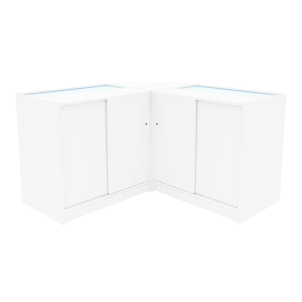 Bringing a modern, professional edge to any retail space, this collection of white LED shop counters offers a stylish and practical solution for showcasing merchandise.