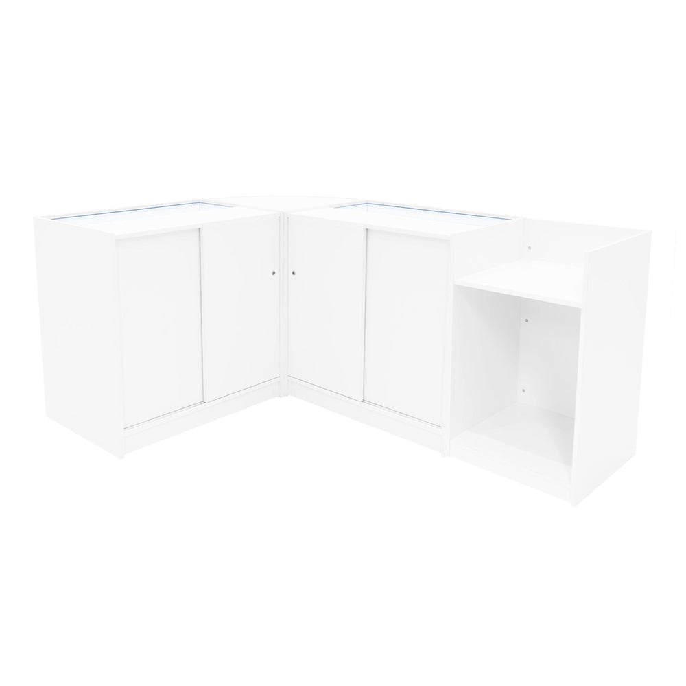 Create a refined, professional retail display with this premium counter bundle, featuring two B900 LED display counters, one CM60 curved corner counter and a TB60 till counter the perfect combination of style, functionality, and layout flexibility for any modern retail environment.