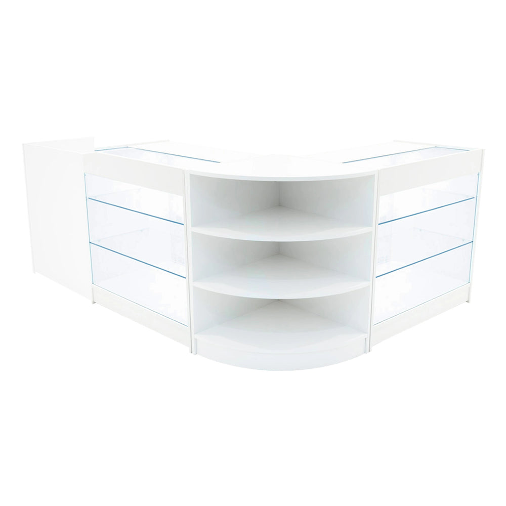 Create a refined, professional retail display with this premium counter bundle, featuring two K900 LED display counters, one LM60 curved corner counter and a TB60 till counter the perfect combination of style, functionality, and layout flexibility for any modern retail environment.