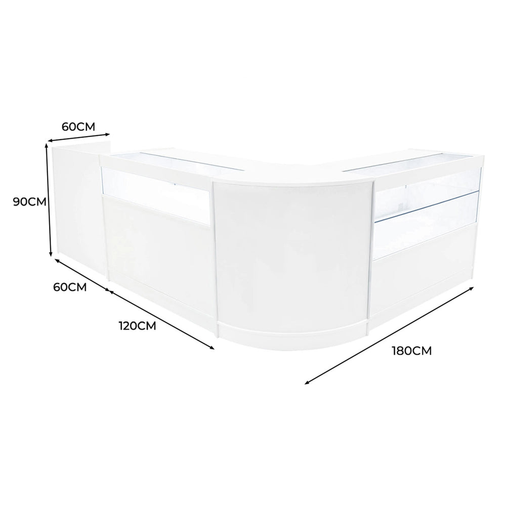 Bringing a modern, professional edge to any retail space, this collection of white LED shop counters offers a stylish and practical solution for showcasing merchandise.