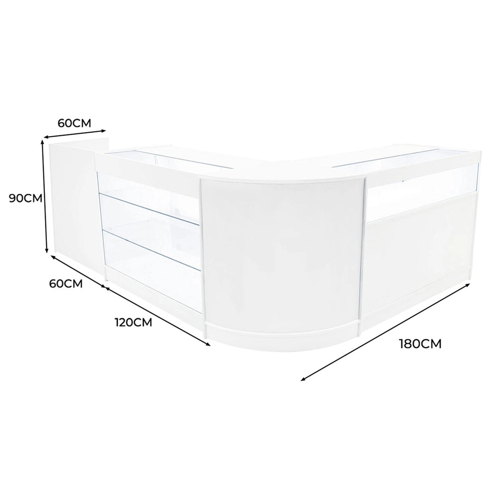 Bringing a modern, professional edge to any retail space, this collection of white LED shop counters offers a stylish and practical solution for showcasing merchandise.