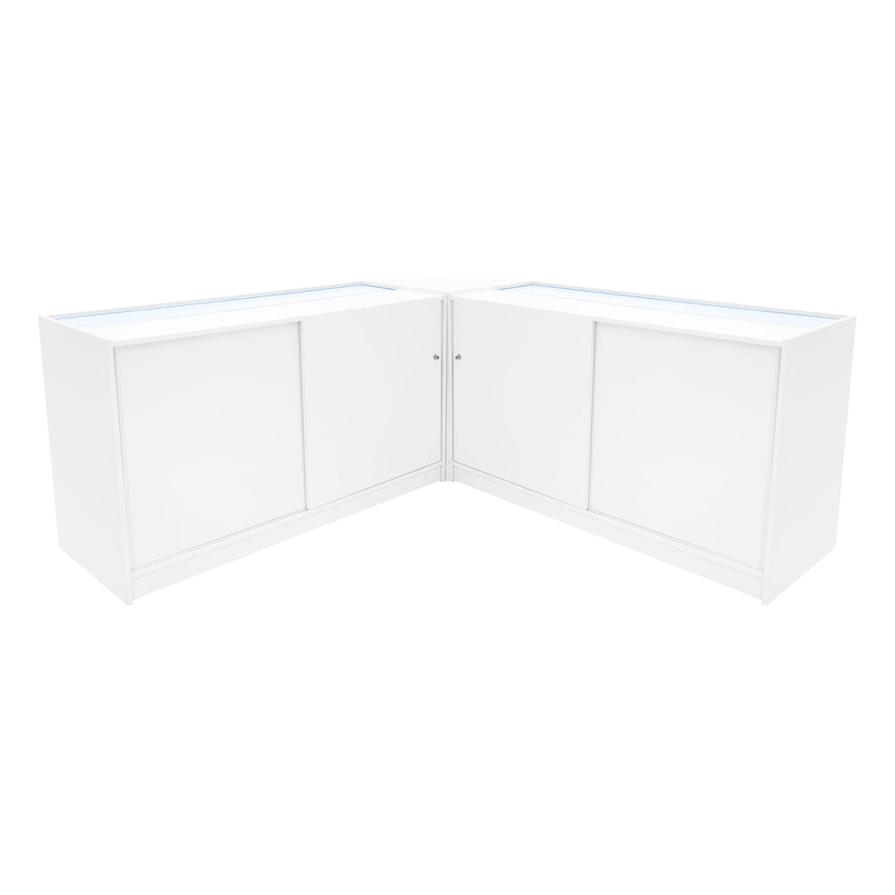 Bringing a modern, professional edge to any retail space, this collection of white LED shop counters offers a stylish and practical solution for showcasing merchandise.