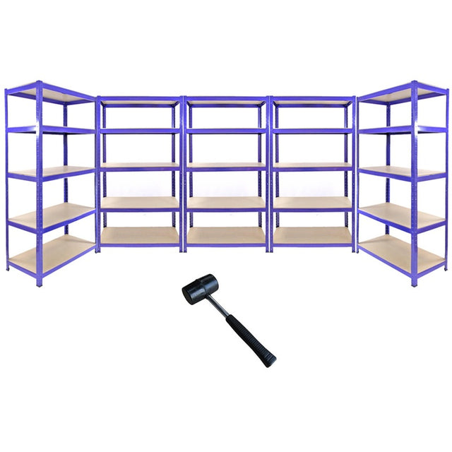 Monster Racking T-Rax Metal Storage Shelves, Blue, 90cm W, 45cm D, Set of 5