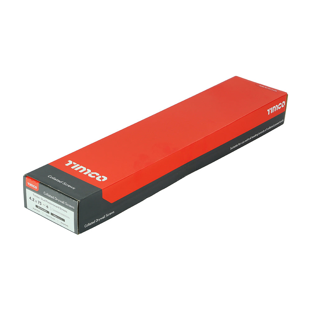 500 x TIMCO Collated Drywall Coarse Thread Bugle Head Black Screws - 4.2 x 75