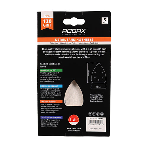 5 x TIMCO Detail Sanding Pads 120 Grit Red - 95 x 136mm