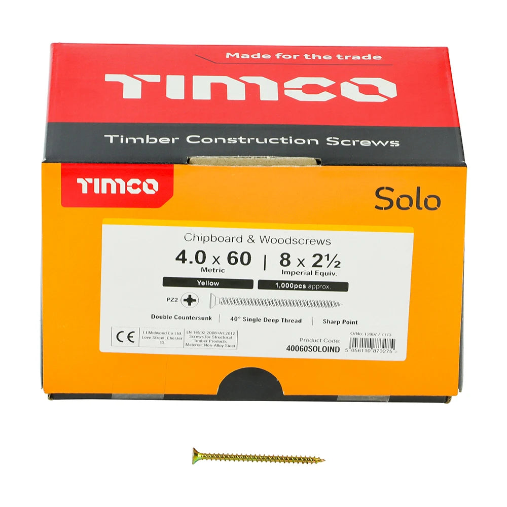 1000 x TIMCO Solo Countersunk Gold Woodscrews - 4.0 x 60