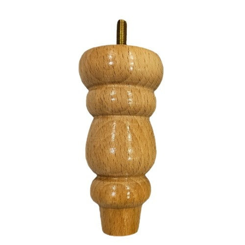 Our bright natural gloss turned foot is crafted from solid beechwood timber. Complete with an M8 fixing and steel floor protector to glide. Whether you are looking to buy four replacement furniture legs to suit your armchair and sofa or a trade wholesale supply, we have a decorative range of modern and new wooden feet available on sale. T Nuts sold separately.